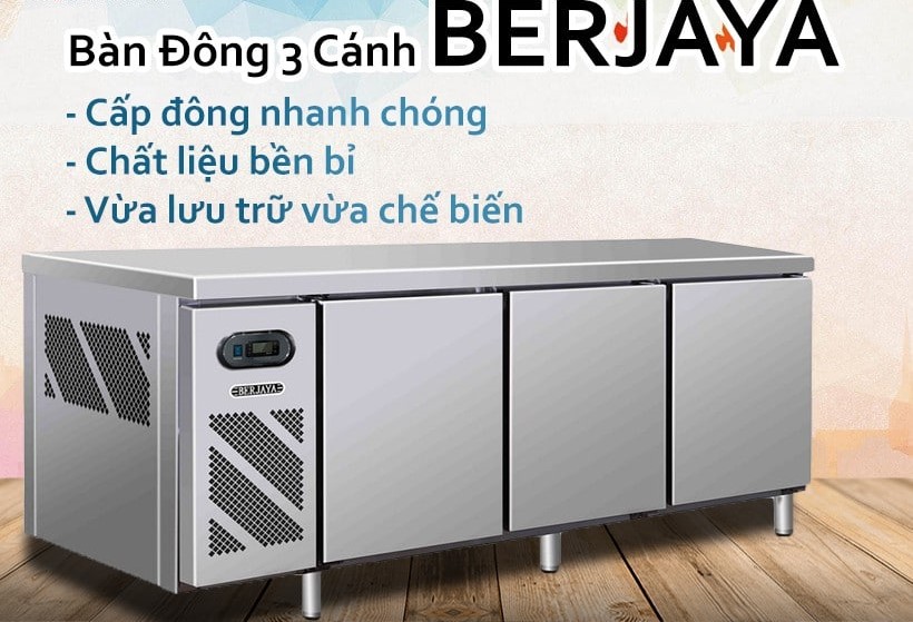 Bàn đông 3 cánh Berjaya BS3DF7/Z sử dụng công nghệ làm lạnh tiên tiến đáp ứng yêu cầu sử dụng trong khu bếp nên được sử dụng rộng rãi tại các bếp ăn nhà hàng, khách sạn, bếp ăn công nghiêp...