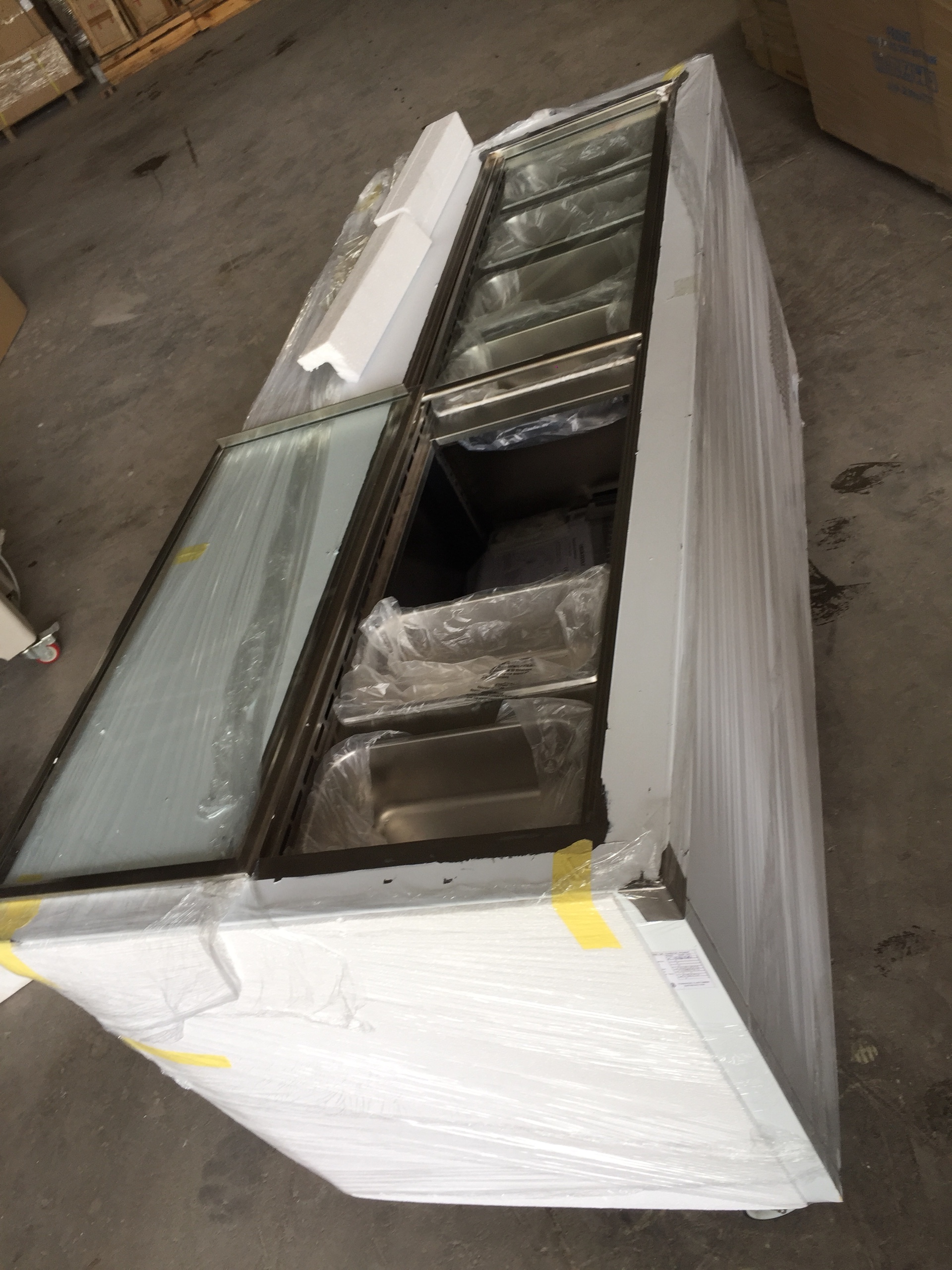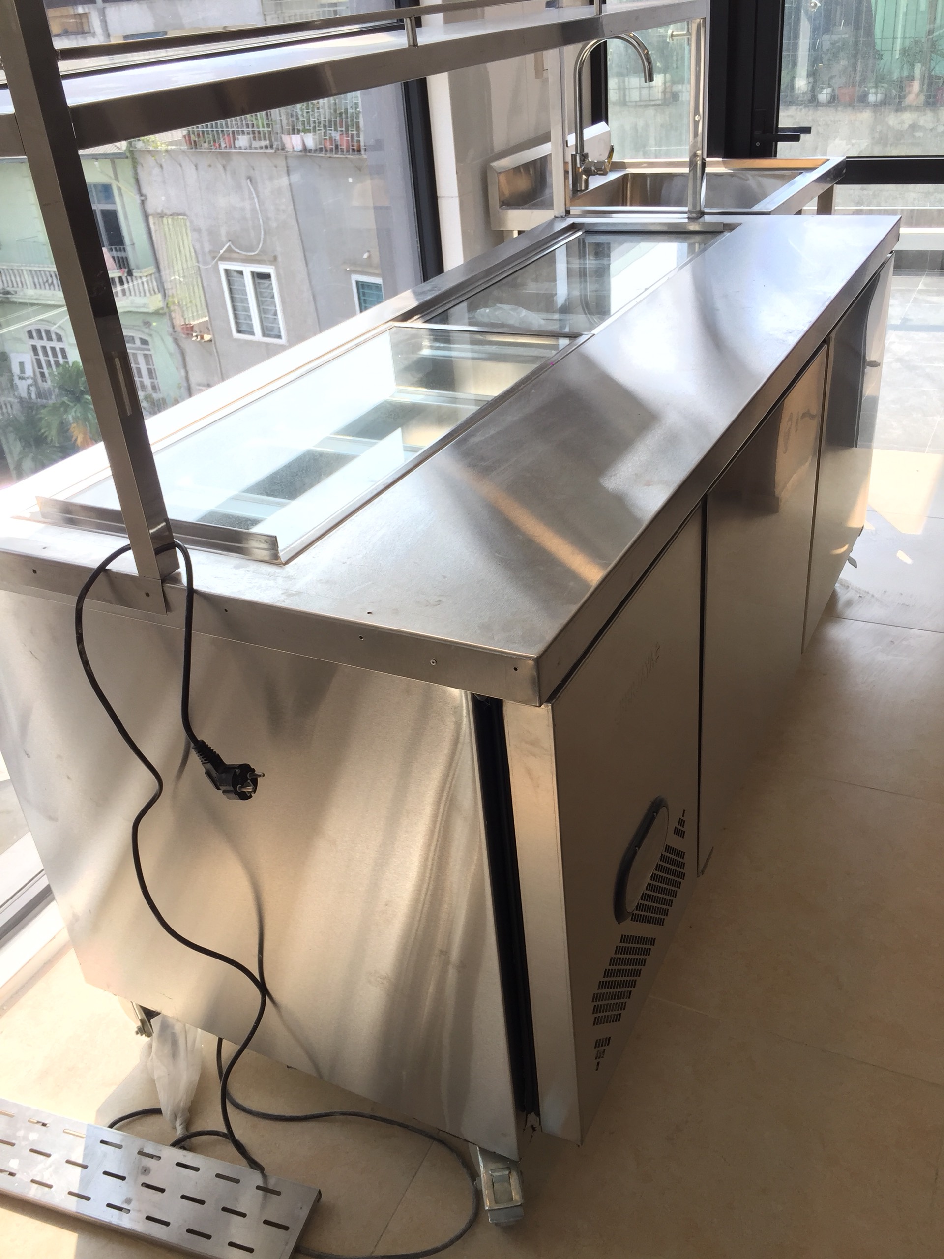Bàn ngang, mặt bàn chia ô và khay bảo quản rau củ quả, đồ uống, salad, sushi..