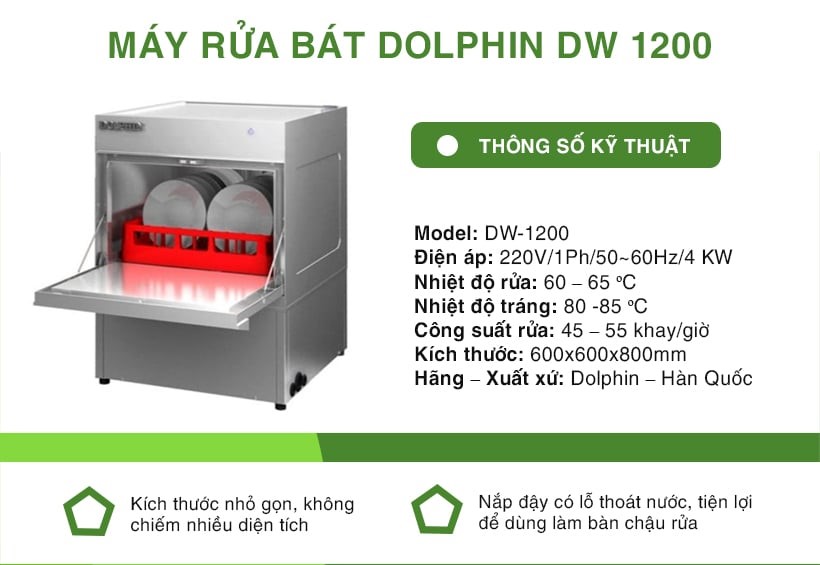 Máy rửa bát Dolphin DW-1200 là một sản phẩm dùng trong gia đình ưu việt nhất trong các dòng máy rửa bát , được sản xuất bởi một dây chuyền sản xuất hiện đại sử dụng công nghệ cao của Korea